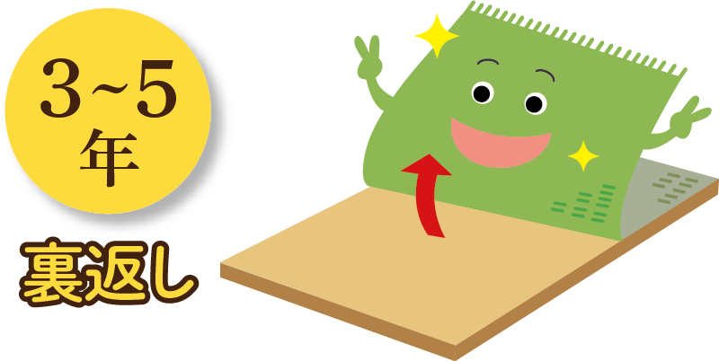 畳の使用年数により、リフレッシュには【裏返し】【表替え】【新畳】の方法があります。