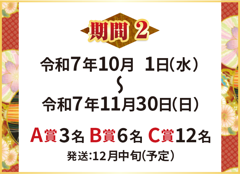 各期間に「新畳」「表替え」を施工いただいた分が抽選対象となります。詳しくはキャンペーン実施畳店にお問い合わせください。